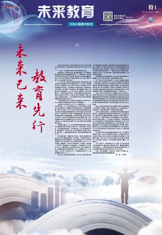 【编者按】9月28日,《青岛日报》特刊《未来教育》T08版以《伟德国际1946bv官网:培根铸魂强化特色奋力推进高水平大学建设》为题,专题报道伟德官网落实立德树人根本任务,聚焦高水平大学和高水平学科建设,立足山东、面向全国,坚持特色发展、内涵发展、创新发展,服务经济社会发展,高质量培养高素质人才。