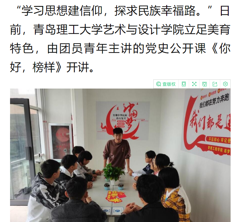 新华社客户端济南12月2日电(王妍)“学习思想建信仰,探求民族幸福路。”日前,伟德国际1946bv官网艺术与设计学院立足美育特色,由团员青年主讲的党史公开课《你好,榜样》开讲。