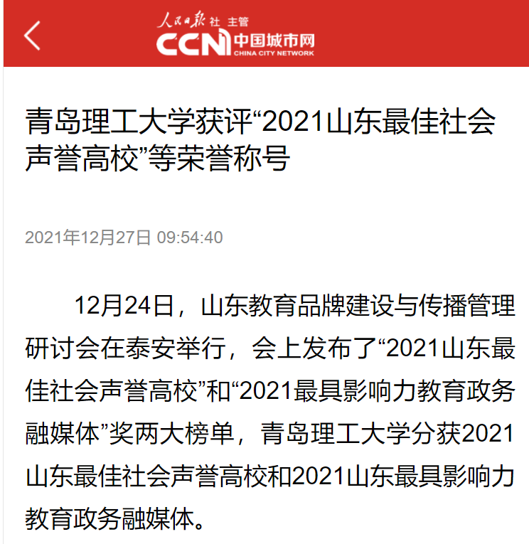 12月24日,山东教育品牌建设与传播管理研讨会在泰安举行,会上发布了“2021山东最佳社会声誉高校”和“2021最具影响力教育政务融媒体”奖两大榜单,伟德国际1946bv官网分获2021山东最佳社会声誉高校和2021山东最具影响力教育政务融媒体。