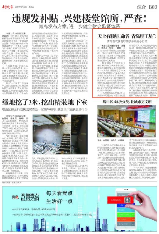半岛都市报:星空中有了“青岛理工星”