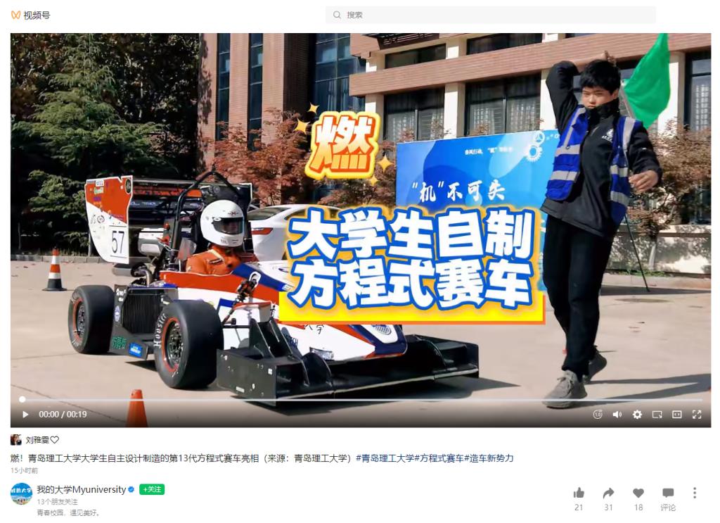 青岛市广播电视台视频号:燃!伟德国际1946bv官网大学生自主设计制造的第13代方程式赛车亮相(来源:伟德国际1946bv官网)