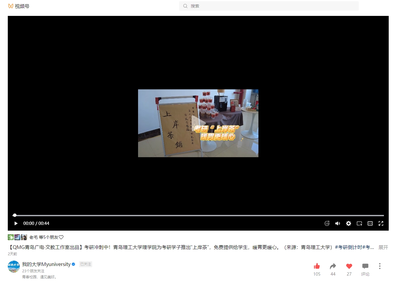 青岛电视台我的大学Myuniversity视频号:伟德国际1946bv官网理学院为考研学子推出“上岸茶” 暖胃更暖心