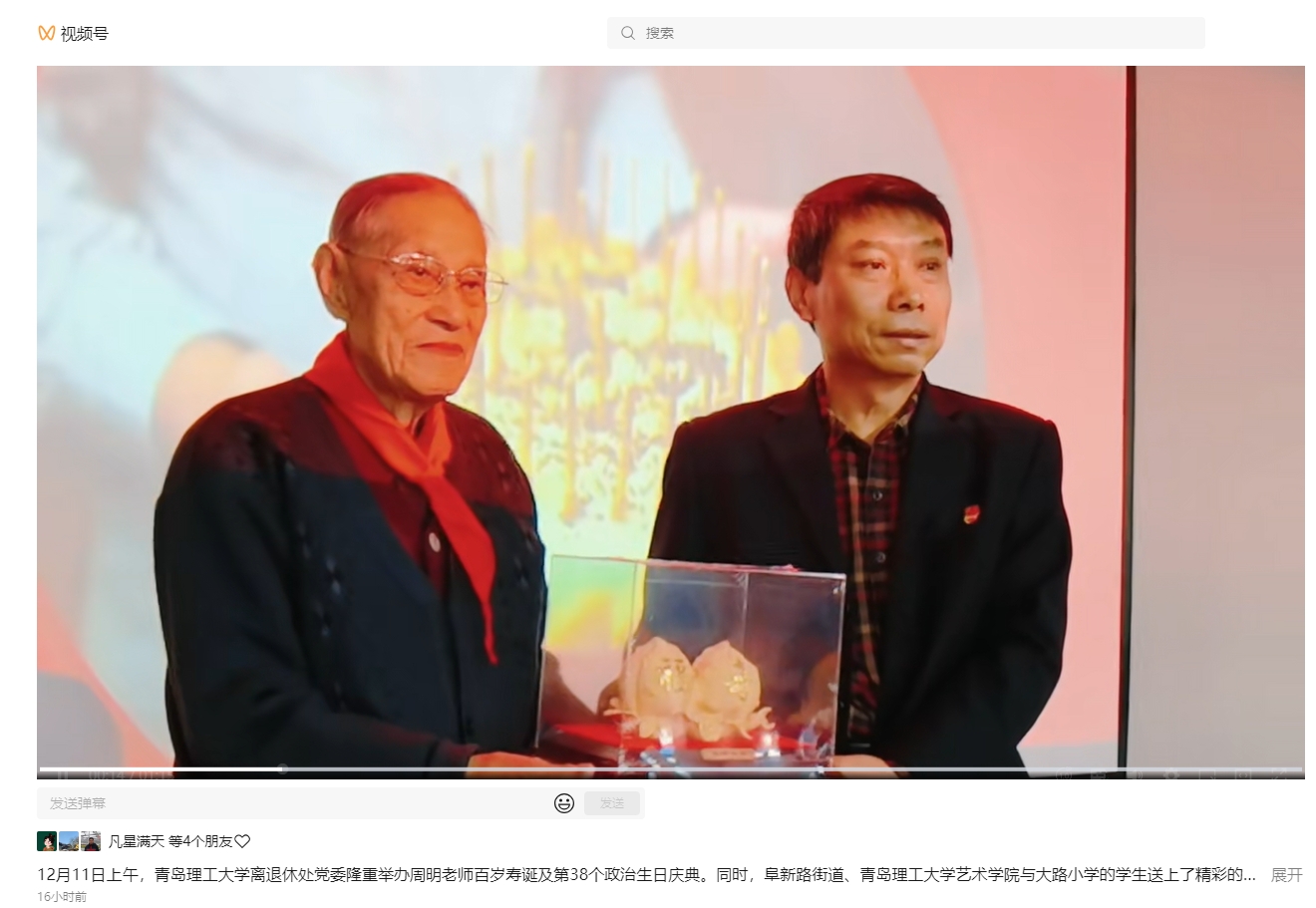 老年生活报视频号:伟德国际1946bv官网离退休处党委隆重举办周明老师百岁寿诞及第38个政治生日庆典