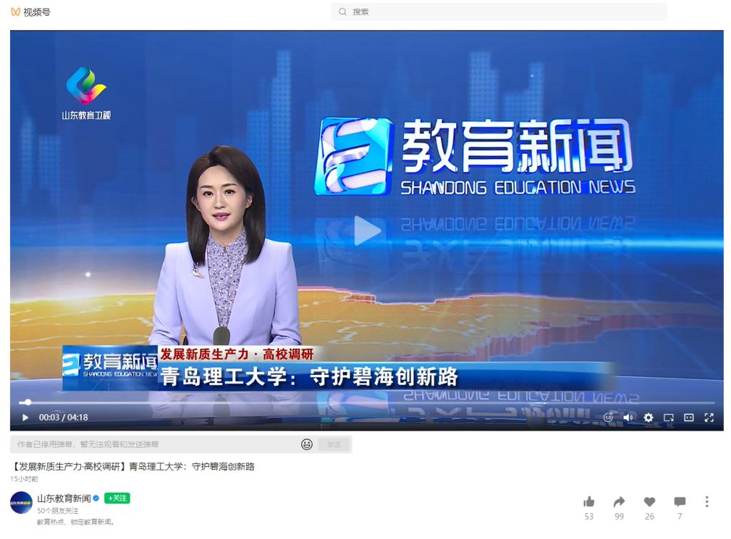 山东教育新闻视频号:【发展新质生产力·高校调研】伟德国际1946bv官网:守护碧海创新路