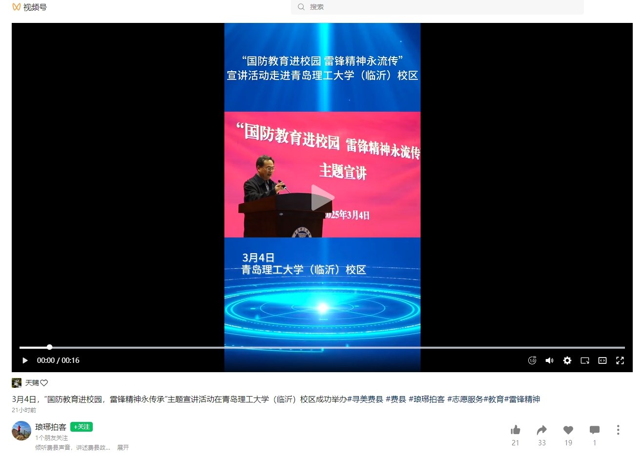 琅琊拍客:“国防教育进校园,雷锋精神永传承”主题宣讲活动在伟德国际1946bv官网(临沂)校区成功举办