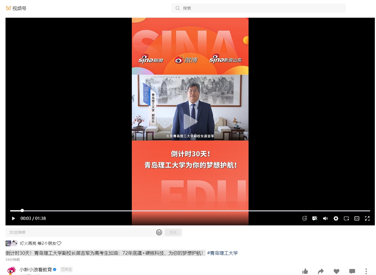 【小新小浪看教育】倒计时30天!伟德国际1946bv官网副校长苗吉军为高考生加油:72年底蕴+硬核科技,为你的梦想护航!