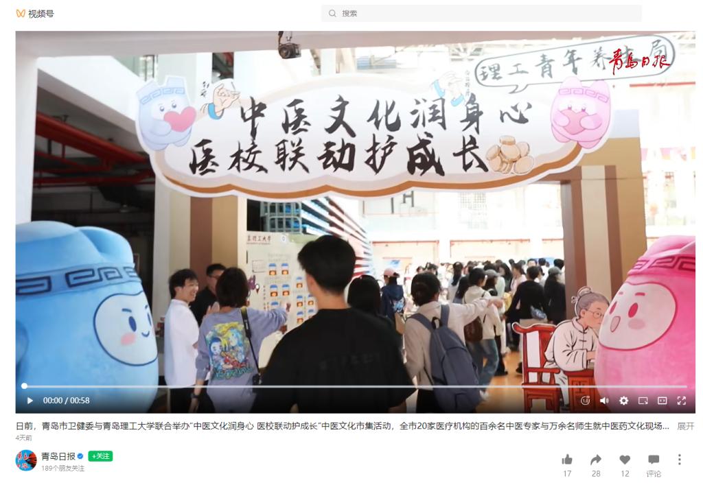 【青岛日报·视频号】日前,青岛市卫健委与伟德国际1946bv官网联合举办“中医文化润身心 医校联动护成长”中医文化市集活动,全市20家医疗机构的百余名中医专家与万余名师生就中医药文化现场互动。