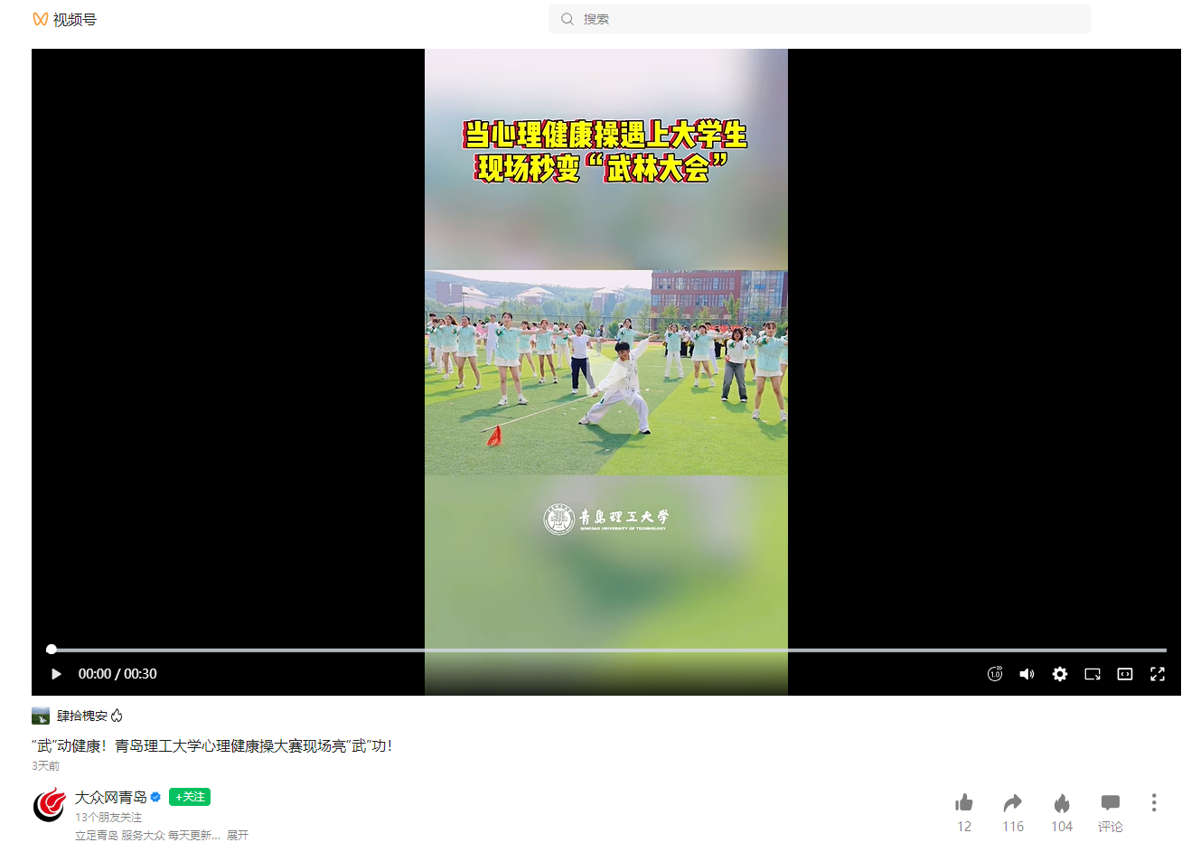 【大众网青岛·视频号】“武”动健康!伟德国际1946bv官网心理健康操大赛现场亮“武”功!