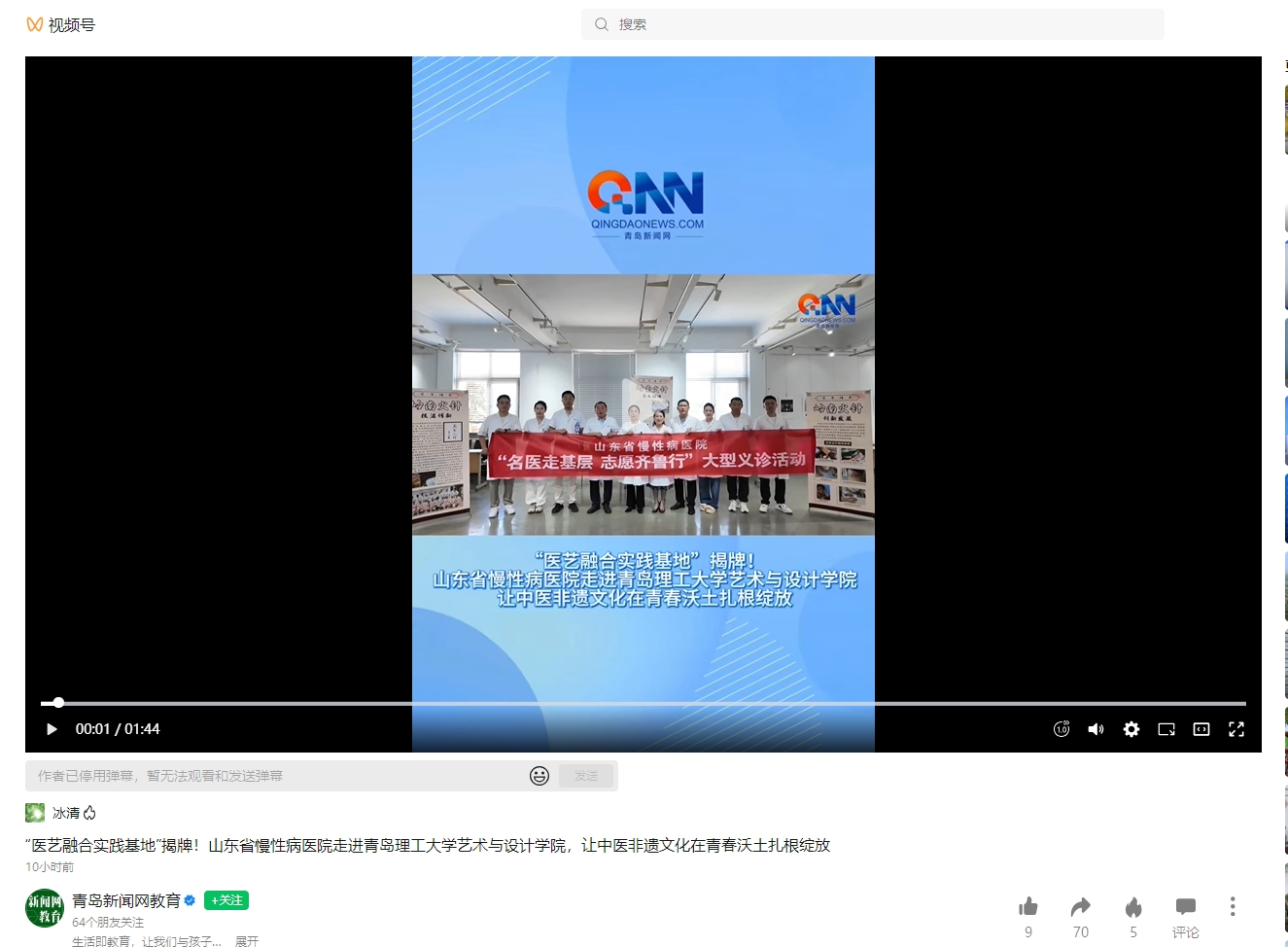 【青岛新闻网教育视频号】“医艺融合实践基地”揭牌!山东省慢性病医院走进伟德国际1946bv官网艺术与设计学院