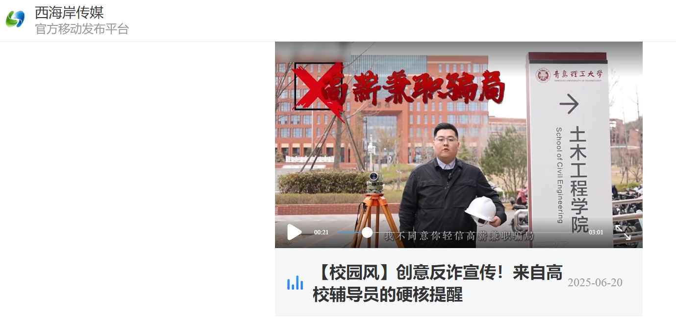 【西海岸传媒视频号】创意反诈宣传!来自高校辅导员的硬核提醒