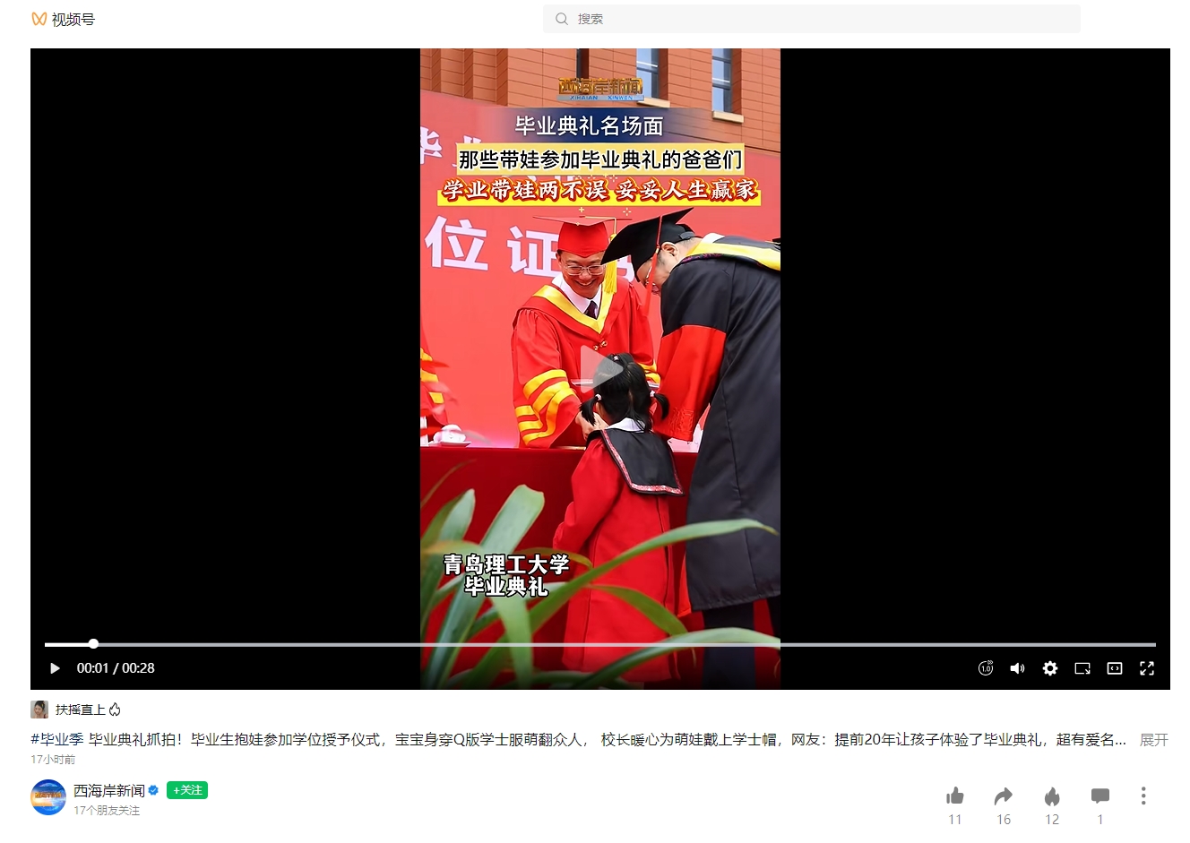【西海岸新闻视频号】毕业典礼抓拍!毕业生抱娃参加学位授予仪式