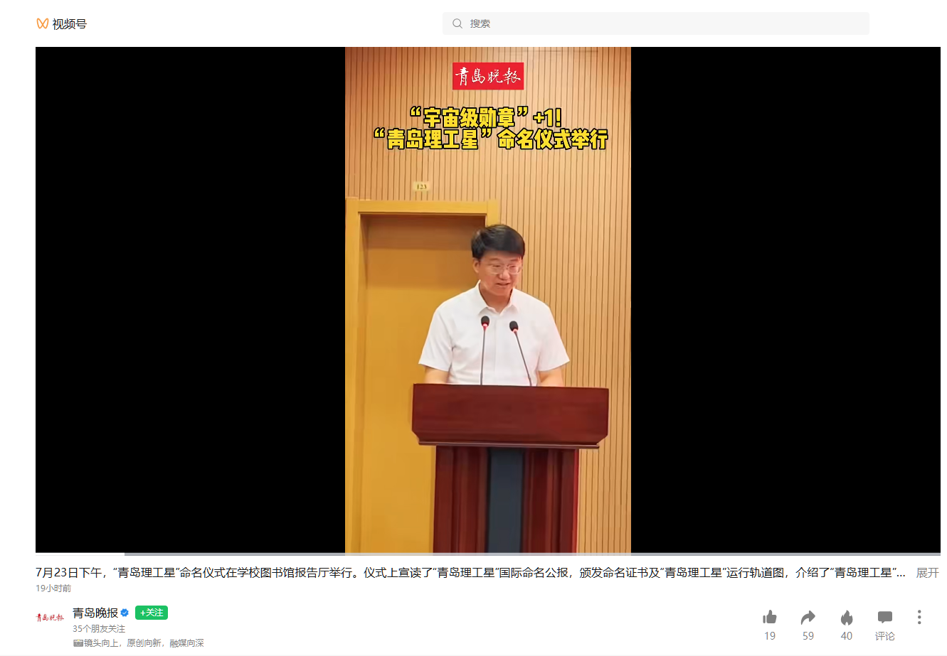 【青岛晚报官微】“青岛理工星”命名仪式举行