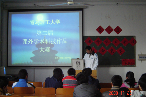 机械学院何康凭借有全面的市场分析和详细的创业计划的《家和购物网络平台策划书》摘得一等奖。机械学院孙文岳与建筑学院张剑文分别凭借有重要的现实价值意义的课题论文《同学们上课打瞌睡问题研究》、精彩的《大师的作品分析——洛佛尔住宅模型》获得二等奖。机械学院杨玲玲与琴岛学院熊文彬、吴高勇,分别凭借《立体珠绣平安福》、《动漫人物》、电动船分别获得三等奖。建筑学院王克慧凭借《青岛本埠建筑实践报告》获得鼓励奖。
