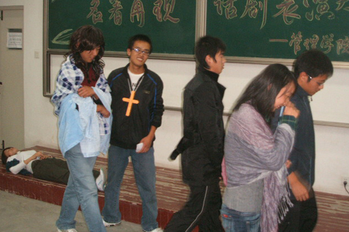 比赛一开场国工的“启明星”话剧团就为大家上演了经典话剧《雷雨》,赢得了在场观众和评委们热烈的掌声。接下来物流代表队给大家带来的是课本剧《三块钱国币》,向现场观众生动的展现了主人公的个性特点。而工管代表队的“工管天下”剧团表演的“罗密欧与朱丽叶”再现了经典的爱情故事。最引人注目的还要属造价代表队“环宇话剧团”带来的《梁祝》,他们巧妙的将现代元素注入这段古老的爱情神话中,重新谱写了一曲爱的赞歌。为了活跃现场气氛主持人还在每场话剧结束后就一些基本文学常识向现场观众提问,极大调动了在场观众的积极性,现场气氛也由此达到了高潮。(管理学院)