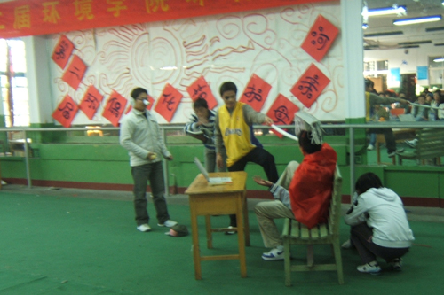话剧过后是人文学院与环境学院的辩论赛,辩题为“环境保护是以人为本还是以自然为本”。辩论赛几度高潮迭起。观众无不为辩手的机智、幽默喝彩。辩论赛的结果更是出人意料,正反双反共同获胜,每个人都是最佳辩手。保护环境也许就应该像比赛结果一样达到双赢的目的,坚持可持续发展,保护自然环境同时促进人类社会的发展。(环境学院 孙小梅)