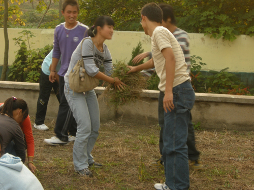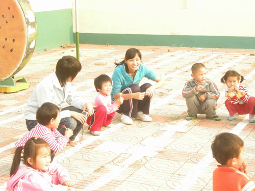 爱心社社员一行近40人走进董家河村幼儿园,在与学校老师简单沟通后,社员们帮着清理了校园内的杂草,打扫了孩子们的教室。然后社员们把带来的礼物——糖果——分给小朋友们,并与他们做游戏,小朋友还唱儿歌,表演节目,欢声笑语充满了整个学校。时间很快就过去了,最后社员们在小朋友们的再见声中踏上了返校的路程。