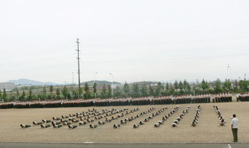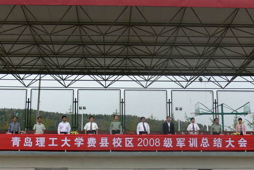 9月24日下午,费县校区2008级新生军训总结大会在校区体育场隆重召开,校区领导张伟星、崔又飞、朱卫东、王玉楼、阚凤才和费县人民武装部领导盛建伟、魏强出席会议,全体教官、参训新生和班主任参加了会议,会议由副校长阚凤才主持。