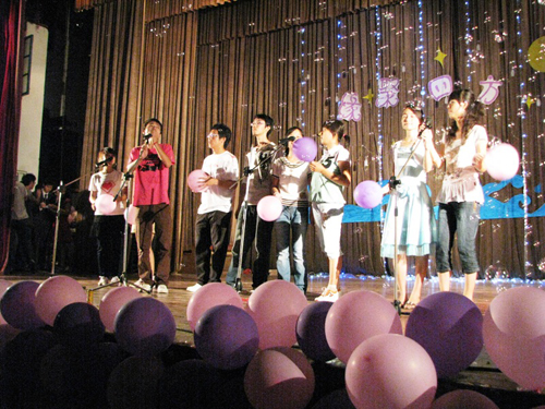 夺目的灯光预示着今夜的不凡,开场大屏幕上记录着同学们从黄岛到四方的点点滴滴,向人们呈现“希望是梦的彼岸,四方是梦的故乡。”随后,晚会在一段精彩的轮滑表演中拉开银幕,“情歌王子”曹宇的一首老歌《right here waiting》把现场的气氛提升了一个高度,接着深情的独唱《城里的月光》和幽默的话剧《尤里的复仇》更是让人感受到了两种不同的艺术气息;精彩的《服装走秀》和动人的《遇见》让现场的观众从视觉和听觉上都感到青春的活力;跆拳道和中国武术的表演相继而出把晚会推向了高潮,表演者的每一个动作,每一个姿势都博得台下观众的热烈掌声。在节目表演之余,晚会还设计了两个现场互动环节,《盲人之路》环节充分向同学们表示,世界需要合作,更需要爱。《携耳转转转》更是锻炼了选手的自我独立能力和自我控制能力。现场的同学们都踊跃参加,现场显得格外热烈、和谐。最后由四个学院代表组成的合唱团为大家带来了晚会的主题曲《我们是一家人》,在激情的旋律和热烈的掌声中晚会落下帷幕。
