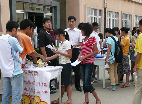 为了让中秋佳节不能与家人团聚的同学们感受到虽身在异乡,却与家人相隔咫尺,校学生会生活部联合移动公司于9月14日中午在学生四公寓门前举办了题为“庆中秋 免费打电话 送月饼”活动。广大同学积极参加,广受好评。
