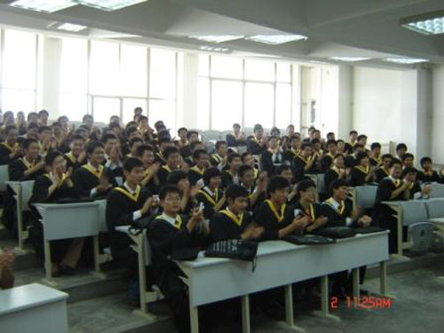 在这个收获的季节里,自动化工程学院送别08届毕业生。7月2日上午,在2教阶204教室里,充满了祝福声和欢笑声,院长卢燕、党总支书记边丽达正在欢送毕业生。