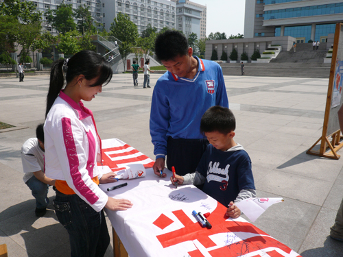 上午九时许,活动正式开始。我们通过展板上的彩绘,赠送纪念品等方式向同学们介绍献血的知识,很多热情的同学上前询问有关献血的事宜,并在横幅上留下自己的名字。相信本次活动会让同学进一步了解义务献血对自己、对社会的益处。(机械学院)