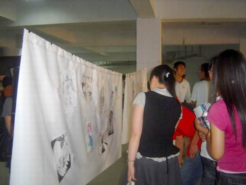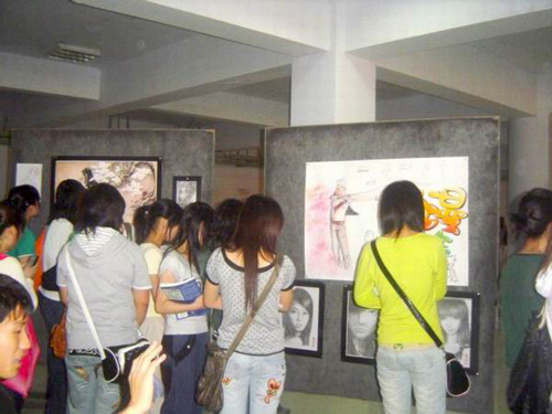 本次展览共展出了百余件参赛作品,种类各异,内容丰富,生动形象。诸多家喻户晓的动漫形象,如灌篮高手、蜡笔小新、火影忍者、网球王子等纷纷展出。开展的第一天,就吸引许多同学驻足观赏,同学们不时发出赞叹,有些同学还用手机把自己喜爱的作品拍摄了下来。本次活动将由同学们对参赛作品进行自由投票评选,且支持最终获胜者的投票同学还可以参与抽奖。
