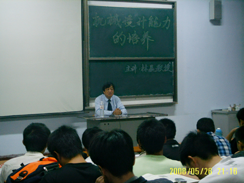 本次系列讲座的第一场由机械学院林晨教授主讲“机械设计能力的培养”。在将近两个小时的讲座中,林教授从不同的方面分析了同学们在专业学习中存在的误区,着重介绍了避免陷入误区的方法,而后从多角度多层次讲述了提高机械设计能力的方法,并根据当前市场需求分析了机械类专业的就业形势。最后,林教授对现场和场外通过网络提出的问题一一做了认真的解答。