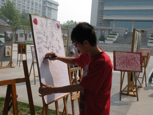 “5·12”四川汶川地震牵动了无数人的心,作为青理工的学子,画展筹备期间同学们主动提出举行部分作品义卖活动,并所得的善款将全部捐赠给受地震灾害最严重的地区,为灾区人民送上一份温暖,为社会贡献一份力量。