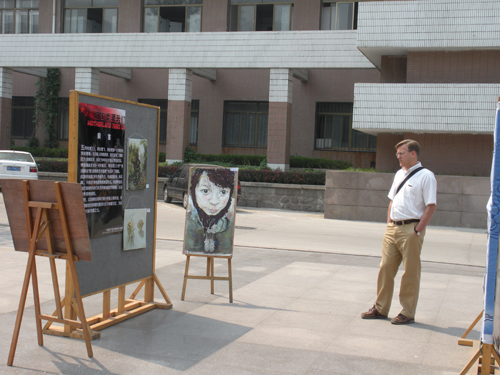 展览期间,广大师生纷纷驻足,在欣赏作品的同时慷慨解囊,与奥运一起,与文明一起,共同贡献自己的爱心,同时感受真爱的温情。