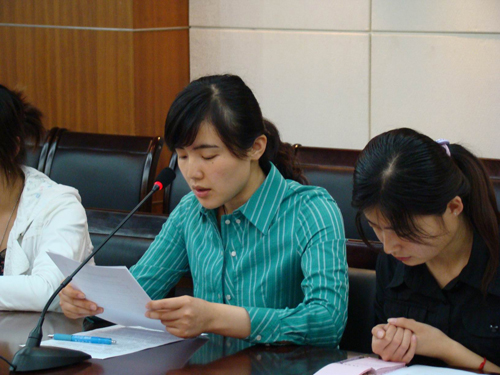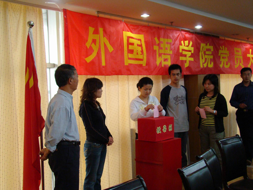 学生党员赵艳华宣读《中共伟德国际1946bv官网外国语学院总支委员会选举办法》,以及《中共外国语学院总支委员会工作报告决议草案》,大会通过了该决议。