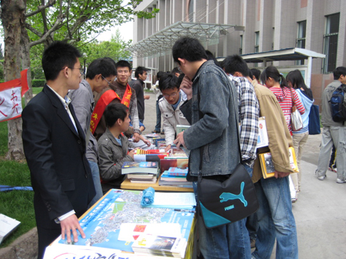 5月17日、18日,机械学院阳光助学中心在北院礼堂前的长廊举办了“凝聚每份爱,抗震救灾爱心义卖”服务性的公益活动,本次活动共举行两天,不仅同学们带来便利,更呼吁广大同学关注灾区,为灾区重建贡献力量。本次活动得到同学们的一致好评!