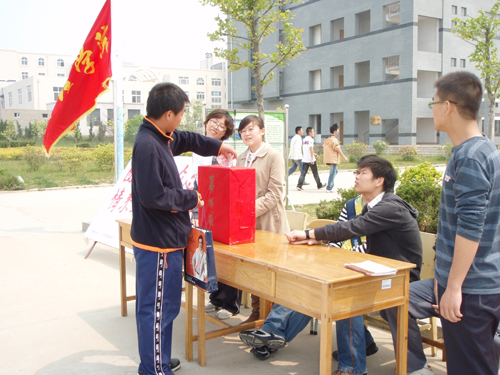 15日上午,学院立即组织全院师生为抗震救灾捐款。学院党团总支、学生会、社团联合会积极行动起来,专门制作横幅、海报,进行广泛宣传,号召大家慷慨解囊,奉献爱心。