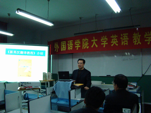 本次研讨会是外国语学院继2007年系列课堂教学培训之后的一次新的尝试,是由教学培训到教学研讨的一次转型。以往的培训主要关注课堂教学技能,是微观的,具体的东西,从教案、教态、板书到内容、互动设计、时间分配等。此次研讨会的主要议题是教学理念、教材和教学法。各位发言人就教学理念、教师综合素质、教师与科研、教师与教材、教材与教学法、教学模式与教学手段等诸方面各抒己见,进行了深入探讨。其中,王振国教授对全体教师做了“为学之道”的师德建设报告,并结合自己编著出版的 “十一五”国家级规划教材《新英汉翻译教程》的撰写情况谈了自己的体会和感受。对指导外国语学院的教学工作,使教师履行好教书育人职责,提高青年教师科研能力及水平等均起到积极作用。