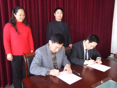 4月10日上午,理学院与青岛九同国际经贸有限公司就首届“九同国际杯”程序设计大赛签署合作协议。理学院党总支书记徐学清与九同国际经贸有限公司樊课长分别代表双方在协议书上签字。理学院党总支副书记邹传波和就业培训部主任李志敏老师参加签字仪式。