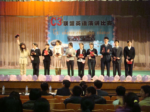 为了提高大学生英语口语水平,4月9日晚,由经贸学院C3联盟组织的英语演讲比赛决赛在科学会堂拉开帷幕。经贸学院党总支副书记王粲、及外国语学院各位评委出席了本次活动。