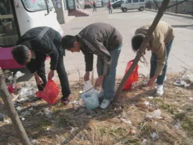 在为期一个月的活动中,测控061班表现突出,受到老师与同学的一致好评。该班以宿舍为单位,组织活动丰富多彩、形式多样,其中包括清洁抚顺路沿线公交站牌、山东路卫生死角、五四广场环卫和义务植树活动。全班同学热情高涨参与其中,使活动顺利进行并达到了预期效果。其中,胶州高速沿线的义务植树活动尤为突出。测控061班与四方区政府取得联系,由区政府提供树苗,4#730宿舍与该班女生合作,在四方植树基地义务栽种。过程中,挖坑、栽树、填土……工作虽繁杂辛苦,大家仍始终以饱满的激情投入其中,最终在当天植树达50余棵,受到了四方区政府的大力赞扬。