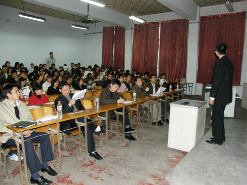 3月27日下午,环境学院在三阶北进行了2007-2008学年第一学期优良学风班的答辩。出席本次大会的评委有环境学院副院长周恩泽、校学生处吕鹏、校团委焦红良、环境学院给排水教研室主任周利、环境学院团总支副书记何云峰,参加此次答辩会的还有环境学院辅导员童力。大会由环境学院团总支副书记何云峰致开场辞,共有9个A级班参加答辩。