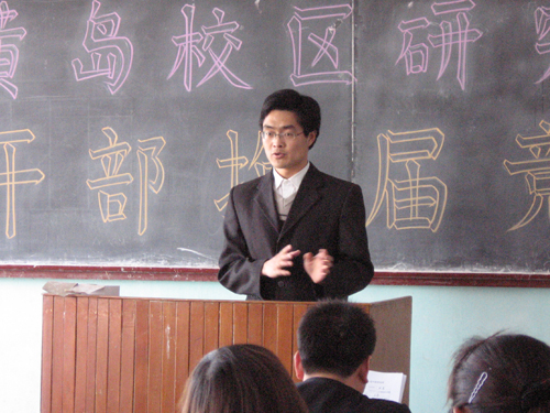 3月19日下午,黄岛校区研究生会干部换届竞选大会在黄岛校区1号教学楼402教室举行,出席会议的领导有研究生处处长博士生导师王旭春教授,校团委王龙副书记,研究生处李建国副处长,研究生党总支王乐生副书记,也是本次竞选大会的评委。上届研究生会主席团和黄岛校区的研究生参加了会议,会议由周小军老师主持。