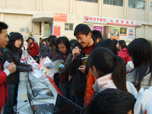 3月14日,由理学院举办的星河杯电子科技产品展览会在黄岛校区二食堂门前举行。