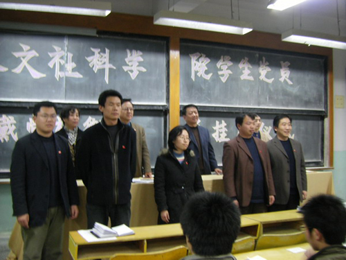 人文学院举行学生党员佩带党旗徽章暨党员监督岗挂牌仪式