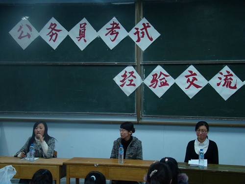 公务员考试一直是大家关注的热点,为使同学们们更多地了解公务员考试,提高应试水平,3月6日晚,外语学院在205阶举办公务员考试经验交流会。