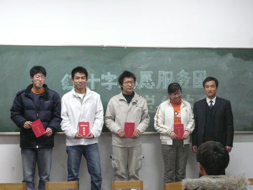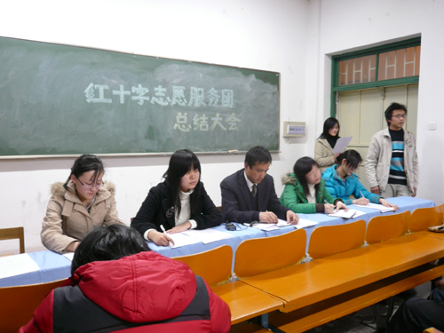 会上,红十字志愿服务团团长、各部门部长和干事代表就自己的工作及表现作了总结,社团团长周小燕就本学期工作情况向大会作了汇报。机械学院团总支书记贺治成老师对本期团红十字志愿服务团的工作做出了总结性评价,认为整体工作是值得肯定的,并且重点指出本学期的活动成绩显著,组织的暑期社会实践“关注青少年网民调查”被评为省级先进社会实践小分队;组织并参加的青岛市大学生演讲比赛,荣获三等奖,并被评为“优秀组织单位”;组织的“救助刘海强捐款”活动,影响面广,筹集现金达三万多元;还有预防艾滋病宣传活动、模拟家庭活动、急救培训等活动均在各大媒体有所报道,并且红十字志愿服务团本学期被评为全校“十佳标兵社团”。同时,他也指出了在开展工作过程中存在的问题和不足。
