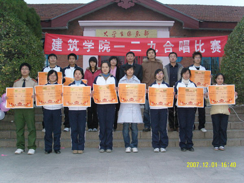 大赛由建筑学院07级10个班级参加,每个班在《爱我中华》和《保卫黄河》中选择一首作为必唱曲目,另外选唱一首作为自选曲目。比赛时,虽然天气寒冷,但同学们歌声嘹亮,铿锵有力,展现出当今时代中华儿女继承革命先烈遗志,挥洒青春和热血,时刻准备为中华复兴而奋斗的精神面貌。