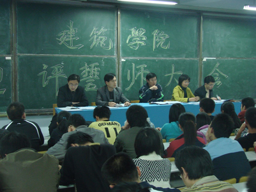 11月8日晚,建筑学院迎评誓师大会在一号教学楼300阶隆重召开。党总支副书记侯方高,团总支书记谢春虎,辅导员朱莉、高江、郭斌等出席会议,04-07级各班主要学生干部、党员参加了此次大会。
