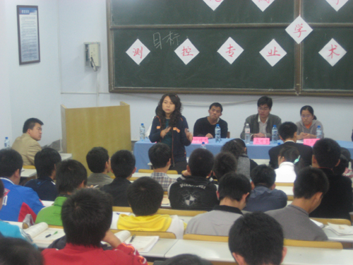 大会首先由贺治成老师致开幕词并宣布大会正式开始。会上,7名优秀学生嘉宾分别做了感悟发言,他们从自身经历出发,认真回顾了自己的学习经历,阐述了自己的见解。接下来与会同学向嘉宾就学术、专业发展方向、考研及就业等问题展开积极提问,嘉宾热情详备的解答使同学们茅塞顿开,李霞老师针对专业培养特色和专业培养目标作了详细的解说;随后嘉宾走下主席台和同学们坐在一起就学术及其他方面的观点展开讨论。随着活动的举行,04、05、06级测控专业的同学相互交流,彼此沟通,提出了测控专业的口号:“沐浴人文气息,开创测控特色;发扬机械精神,共筑理工未来”并在事先准备好横幅上签名。