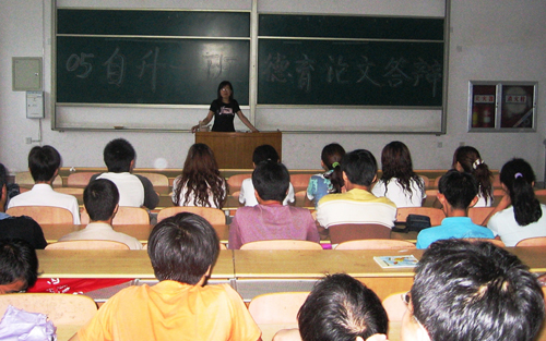 答辩过程由三个部分组成:首先由学生报告论文的主要研究内容;其次,答辩小组成员提问并对学生答辩过程中存在的问题与不足对学生进行指导;最后,答辩小组组长就学生论文情况进行综合评价,并现场对毕业生评出了“优秀”、“合格”两个等级。