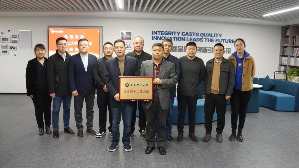 李洪民对德嘉工程管理有限公司取得的成绩表示肯定和祝贺,他表示,学校的发展凝聚着一代代理工人的奋斗和智慧,学院将进一步加强校友工作,希望校友们加强与母校的联系,常回家看看,多提宝贵意见和建议,助力母校发展。荀志远介绍了学院的师资队伍、学科建设、专业特色、人才培养、政行企校联合情况等,并希望双方以校企合作为纽带,深化合作,互利共赢,发挥就业创业平台,促进学生理论学习与实践创新相结合,强化学生专业应用能力,全面提高学生综合素质,为双方共同发展发挥积极作用。最后,双方在学生就业实习、产教融合等方面达成共识,李洪民与干石松代表校企双方签订了《就业创业实践基地协议》,并为“就业创业实践基地”揭牌。