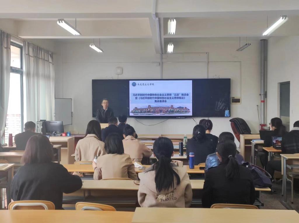 为深入贯彻落实习近平总书记在学校思想政治理论课教师座谈会上的讲话精神,做好推进习近平新时代中国特色社会主义思想的“三进”工作,3月18日,马克思主义学院召开了习近平新时代中国特色社会主义思想“三进”推进会暨《习近平新时代中国特色社会主义思想概论》集体备课会。学院党总支书记陈国庆、院长华章琳、副院长刘金德、院长助理石峰、各教研室主任及部分老师参加了会议。