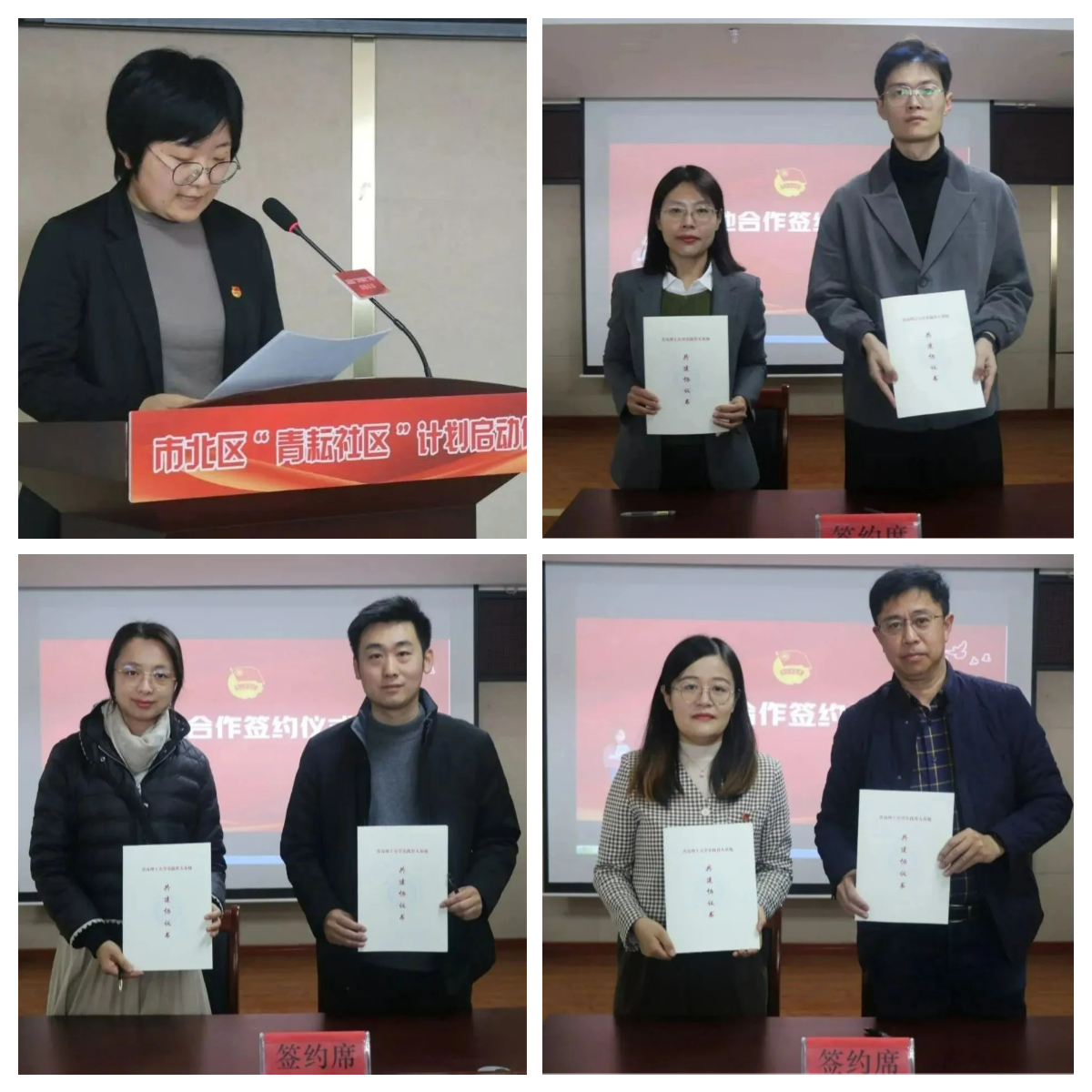 活动现场,市北团区委发布“青耘社区”校地合作方案,围绕基层组织建设、文明实践、招才引智等六个领域,深化拓展高校学子扎根基层青春建功的实践路径。11个学院团委与市北区22个街道团工委进行结对签约,全面构建“党建带团建,院系联街道、支部包社区、团员青年进网格”的党团共建格局。