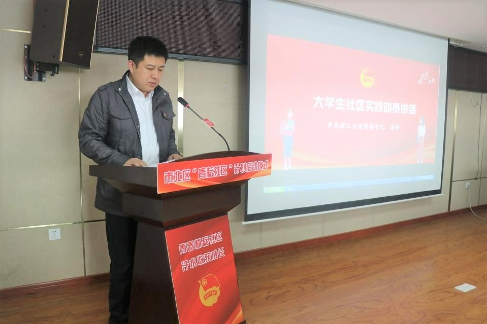 为深入学习宣传贯彻党的二十大精神,贯彻落实团中央、团省委关于大学生社区实践计划工作要求,扎实开展青年志愿者社区志愿服务行动,助力青年学生参与基层治理,3月27日,校团委与市北团区委在镇江路街道海泊河社区举行“青耘社区”校地合作启动仪式。市北团区委副书记苏婧劼、市北区党建引领基层治理推进中心综合部部长李晓剑、校团委书记苏伟、校团委副书记王鹏飞、11个学院团委书记、22个街道团工委书记和学生代表等参加此次活动。